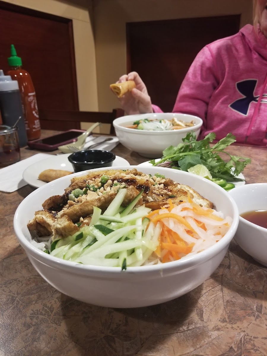 Bun Cha Goi Chay Vegetarian Egg Rolls on Rice Noodles