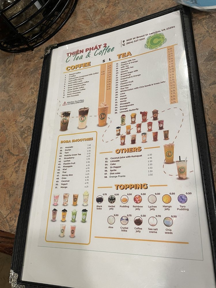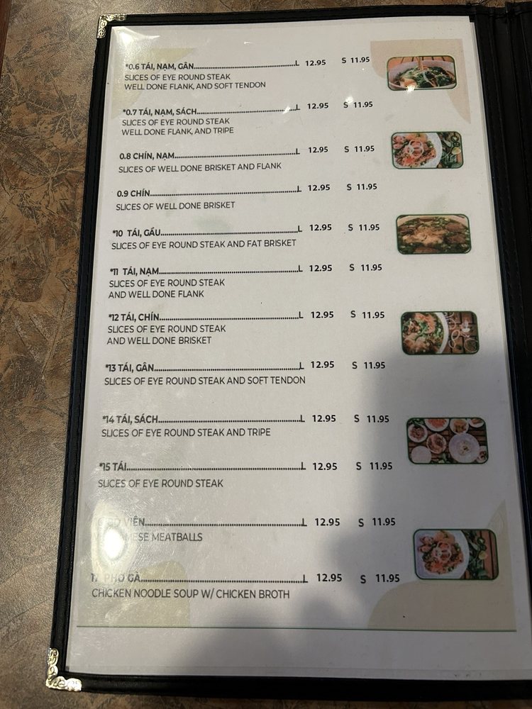 Pho Thien Phat 2 Menu